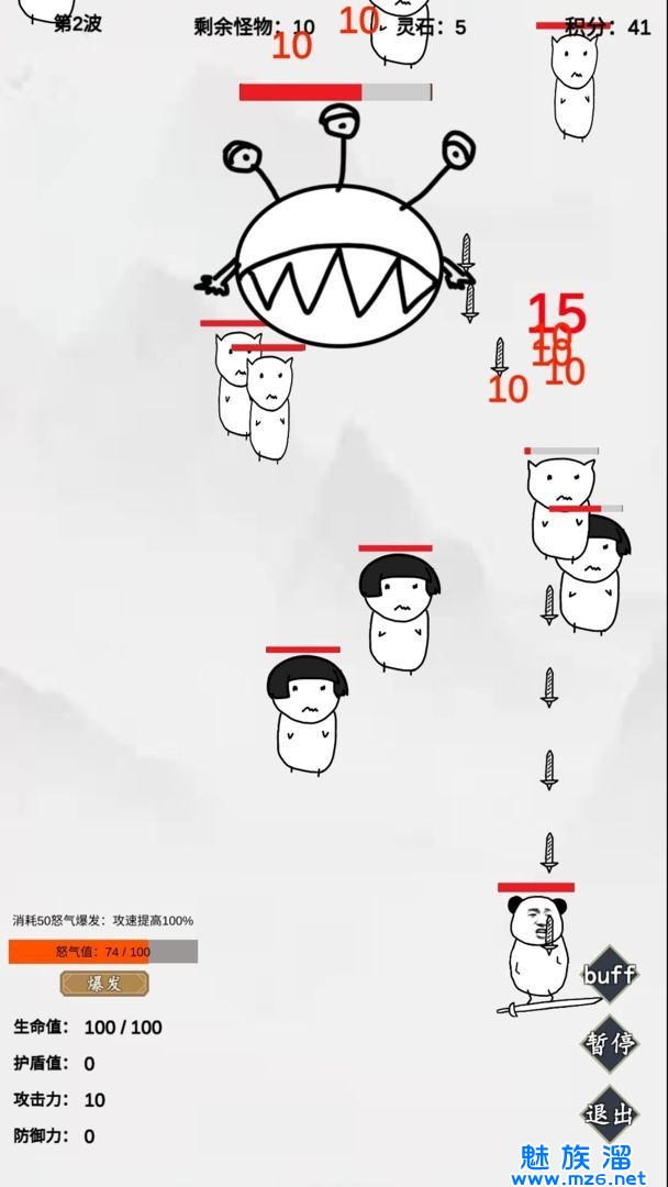 大型古装玄幻仙侠背景的roguelike弹幕射击休闲小游戏。好好的修着仙骑着飞剑,忽得被突然出现的大黑洞吸入了一个秘境,为了逃出去,你只有不断的biubiubiu........