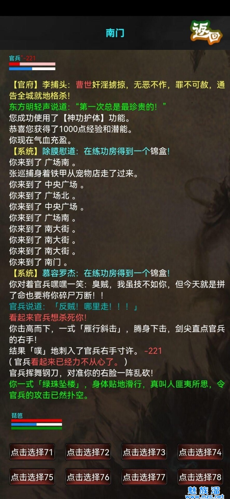 书剑豪情游戏根据简易地文字形式来使你感受不一般的江湖探险游戏玩法,你能在游戏里面根据点一下来修习,提高自己的整体实力,与此同时根据点一下文本来开启各种各样有意思的故事情节,在这里乱世天下中协助必须协助的老百姓们,变成一代侠客。