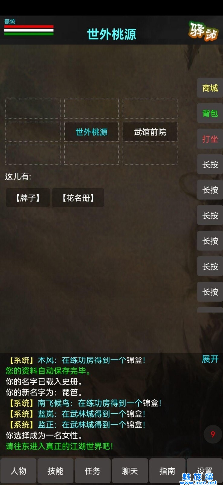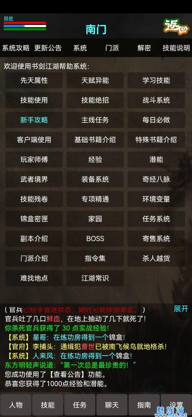 书剑豪情是一款好玩的mud修仙游戏,简单的游戏画面,沉浸式的游戏体验,大家都很期待的修仙,战斗随时开始,游戏任务也很多,免费获得领礼包呢,开局就送礼包,选择你的武当,完整剧情,喜欢的小伙伴可以来本站下载!