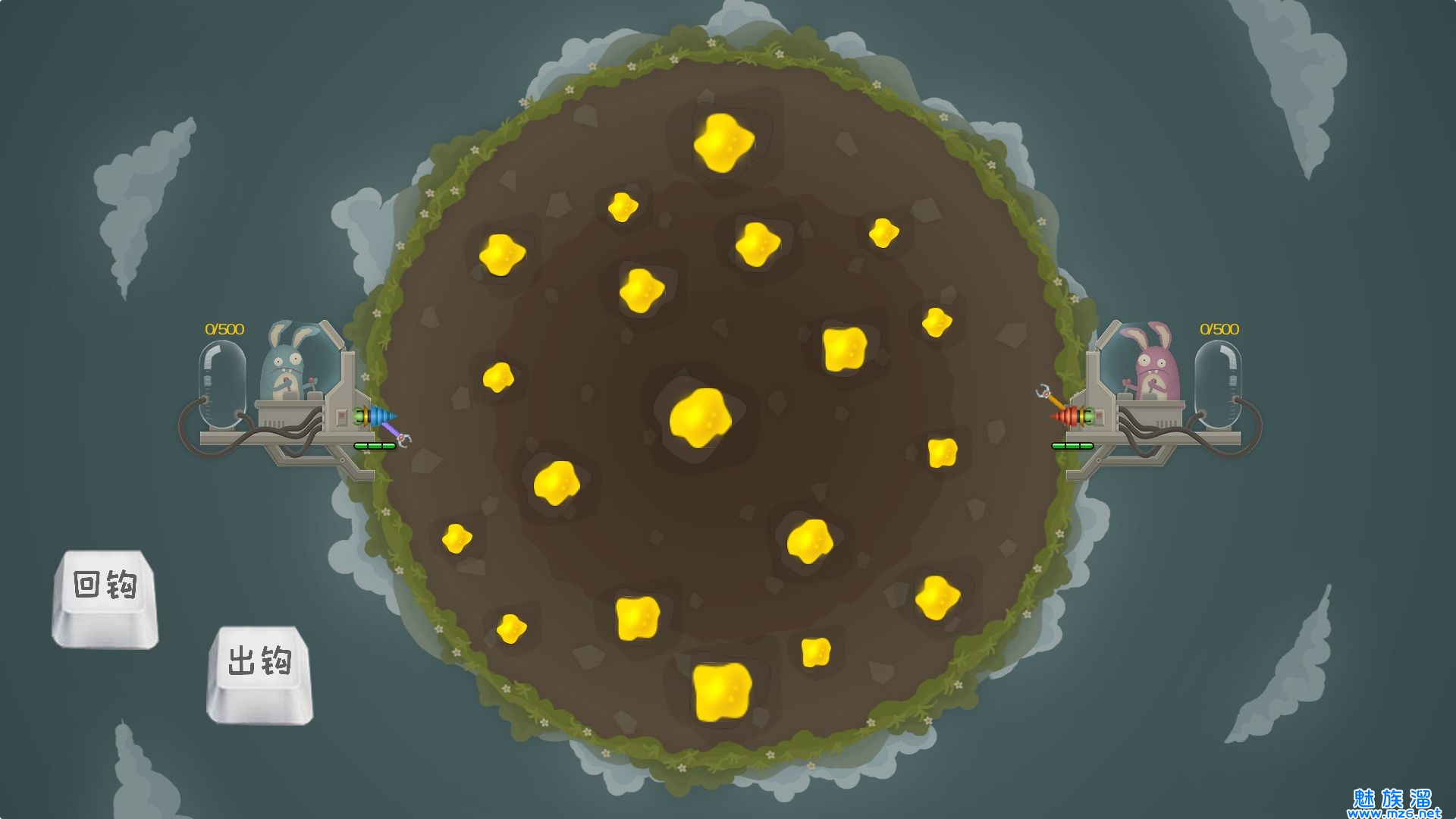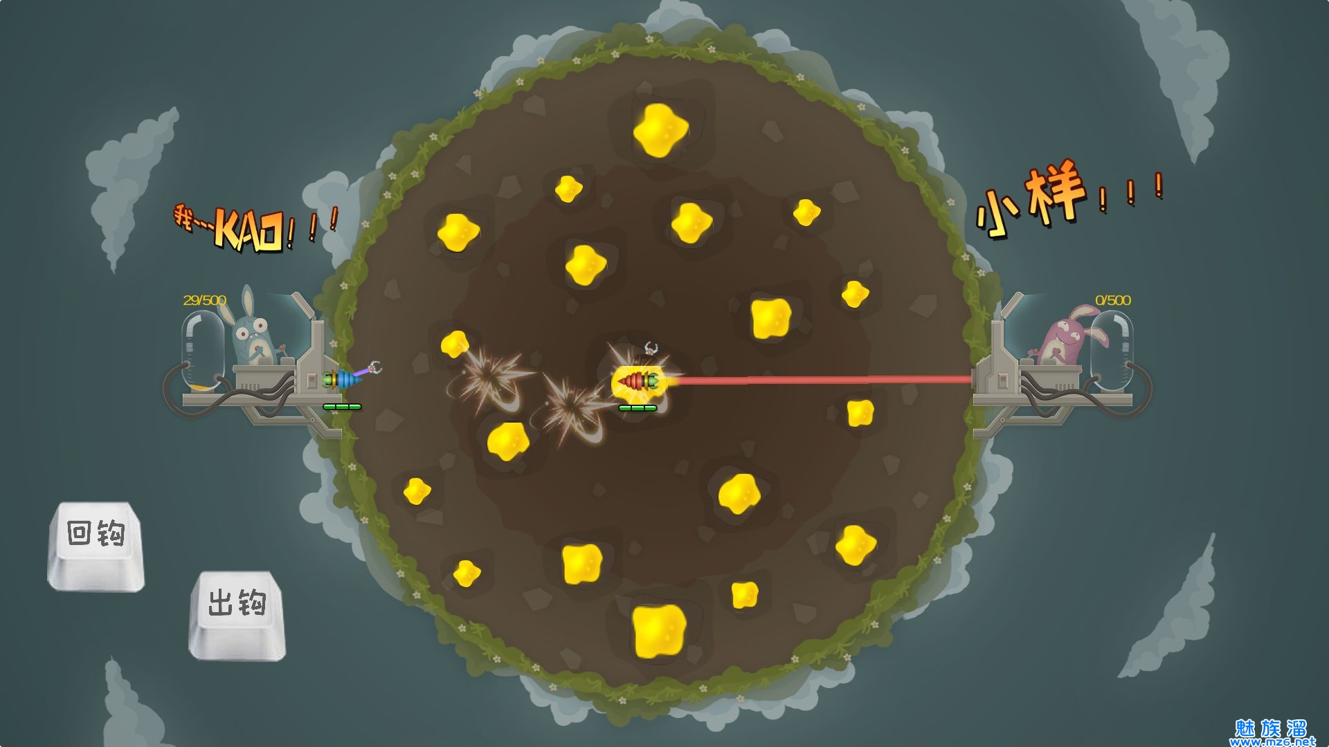 2、发射你的钩爪射向金块,构建输液线,提取矿液,最先获取500单位液体取得胜利。