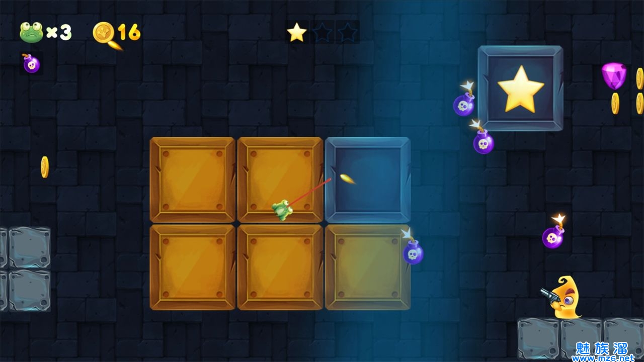 摇摆地牢游戏是一款新玩法的跳跃类游戏。在游戏中你需要扮演一只青蛙,操控青蛙在各个平台上摇摆跳跃。在跳跃过程在你需要把握时机,取得物品,打开机关,并且还要躲避危险。感兴趣的就快来下载吧!