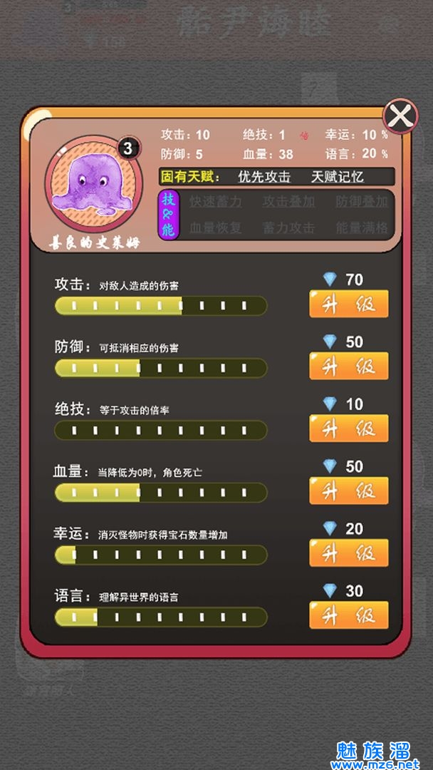 1、升级自己的属性,遇到怪物才不会慌张,尽快消灭它们不要影响到前进路线;