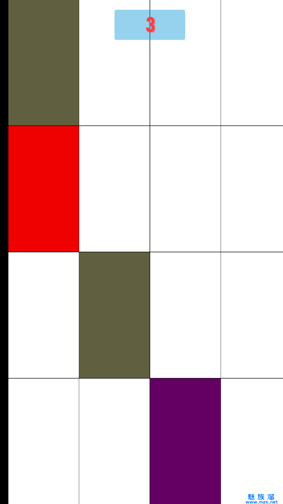 这是一款极其简约和极其耐玩的益智类小游戏,点击屏幕上的黑色或者彩色块儿前进即可。注意千万不要碰到白色块儿,还有危险的红色块儿哦。