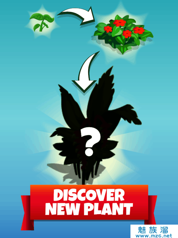 1、简单容易上人上瘾的操作,没过10面就会出现一个箱子,点开就会有最基本的植物可以用来合成,点击下方的图标会减少出现的时间。