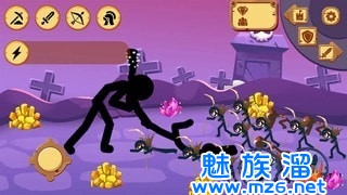 1、游戏中玩家将亲临激烈刺激的战场,指挥你的火柴人勇士进行作战,而且游戏中有着各种火柴人士兵可供训练;