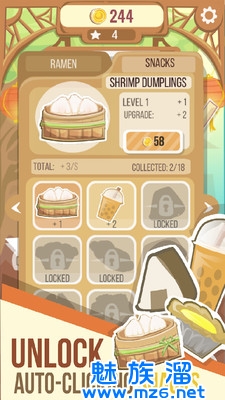 解锁您理想的游戏体验:所有点击器升级项目,自动点播小吃,背景和配件最终都可以通过整个游戏中的星星免费在游戏中解锁。对于所有饥饿的大学生在那里吃拉面,不要担心;