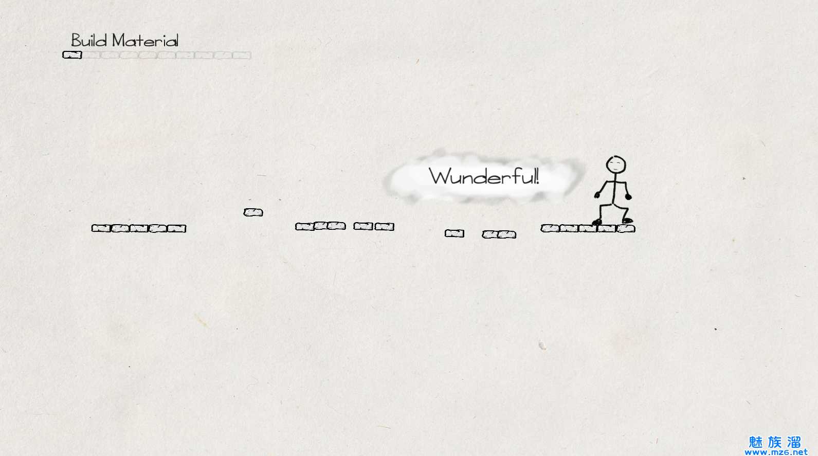 它需要通过一些像是素描画的结构平台和危险植物,请在有限的素材里选择并建造能帮助火柴人先生的通路。