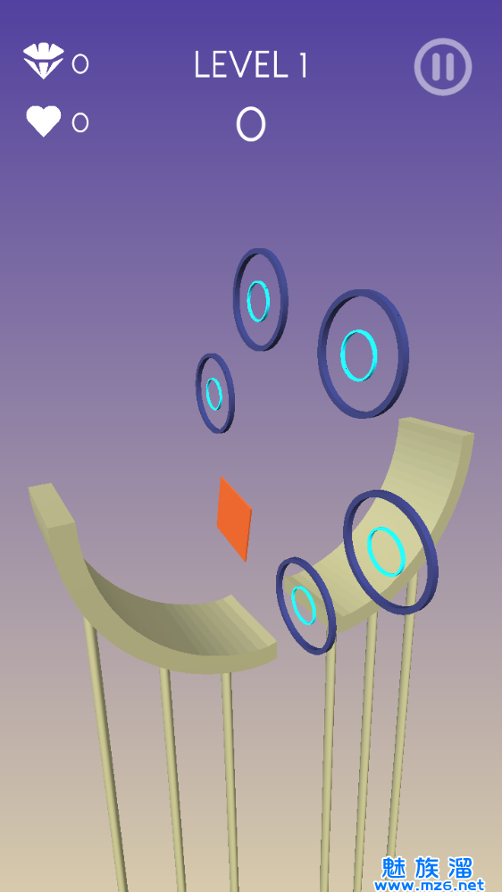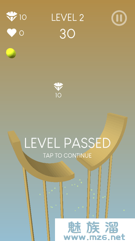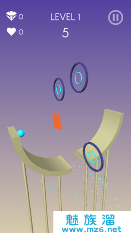 1、控制小球在各种不同难度的斜坡上来回滚动,适时跳起,打破消除空中的圆圈。