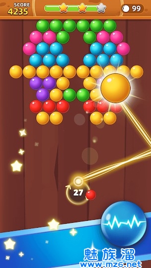 3、轻松的操作体验只需要你松手即可发射,这样可以让相同颜色的气泡进行消除了。非常简单;