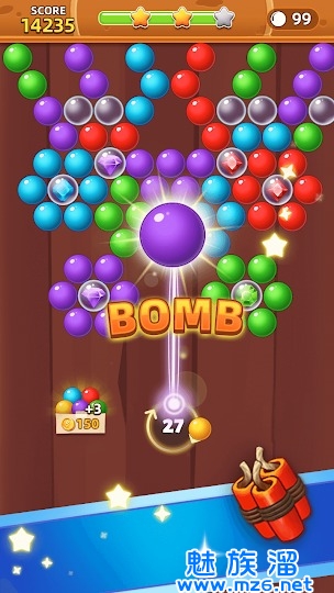 2、通过射击下方泡泡来进行相同颜色泡泡消除;