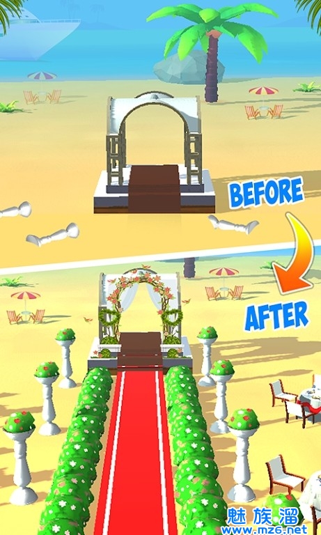 2、我们玩家需要帮助快要结婚的情侣夫妇们重置好婚礼现场。