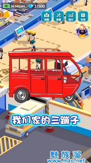 造个汽车玩是一款卡通风格的经营模拟类游戏,玩家将管理整个工厂制造各种各样的汽车,条件解锁后可以制造更多类型,前期需要建造必要的基础设施,收集周围生产现需要的资源材料,招聘员工到各种岗位让工厂加速运营。
