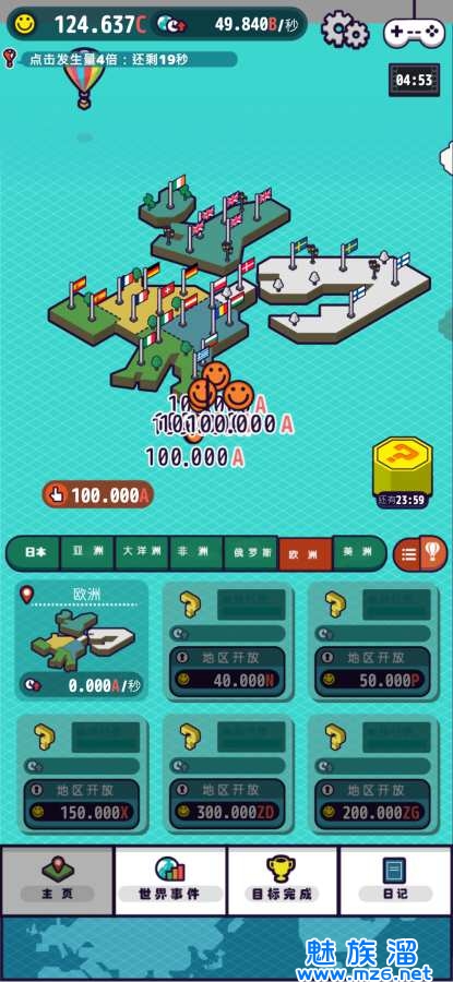游戏玩法简单,不断点击屏幕获得笑脸,用一定数量的笑脸解锁地区,你会看到许多地区及其特色的东西,但可能与现实有些差距
