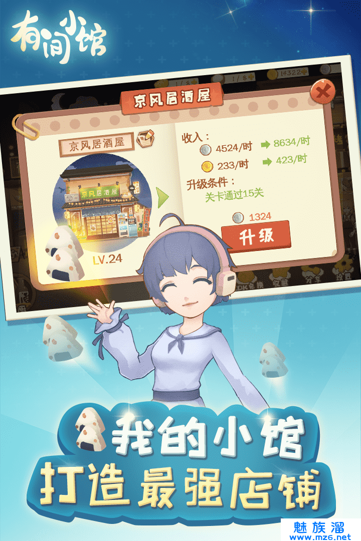 这是一个美食经营闯关的手游,作为店主,不仅要满足客人们的要求,还要完成一关关的任务,提升小馆的经验和等级,开一间自己喜欢的料理店,通过解锁各种美味的食物来获得顾客的喜欢,这样你的收益才会更多。还有很多好玩的玩法会在这里面,只要你多多的体验和研究,自然不会让你失望的。