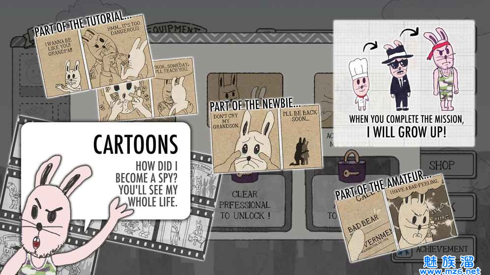 《间谍兔》是一款动漫风格的休闲街机类手游,游戏中所有的角色都是兔子,玩家将为了寻找失踪的特工爷爷展开一场全新的冒险,游戏总共有三种难度可供玩家挑战,以闯关的形式进行,操作简单易上手,拖拽点击屏幕即可,每关都需要玩家用不同的方式解决困难,更有27种可爱的宠物可以收集,对这款《间谍兔》游戏感兴趣的玩家快来下载吧。