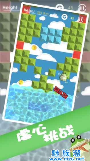 让我们一起开始我们的冒险吧!,游戏中的青蛙生活环境受到污染,他尝试想去到更高的地方,攀过云层,去寻找解决办法。尽管旅途十分艰险,但他仍然坚持着他的梦想。玩家们将控制着一只由梦想的青蛙,而你将要接受的挑战则非常的虐心.