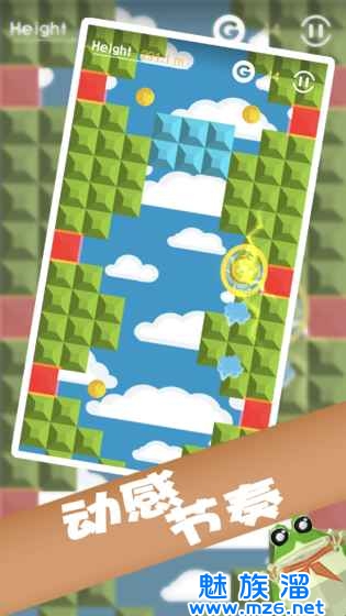 滑动屏幕,青蛙将借助舌头的弹力将自己弹到更高的地方