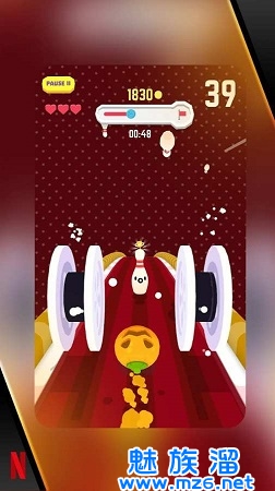 2.操作非常简单。玩家可以通过滑动屏幕来改变保龄球的跑酷轨迹。