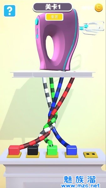 2、绳子排序3D每一关的挑战方式只有一次,一旦把绳子打成死结,游戏就结束了。