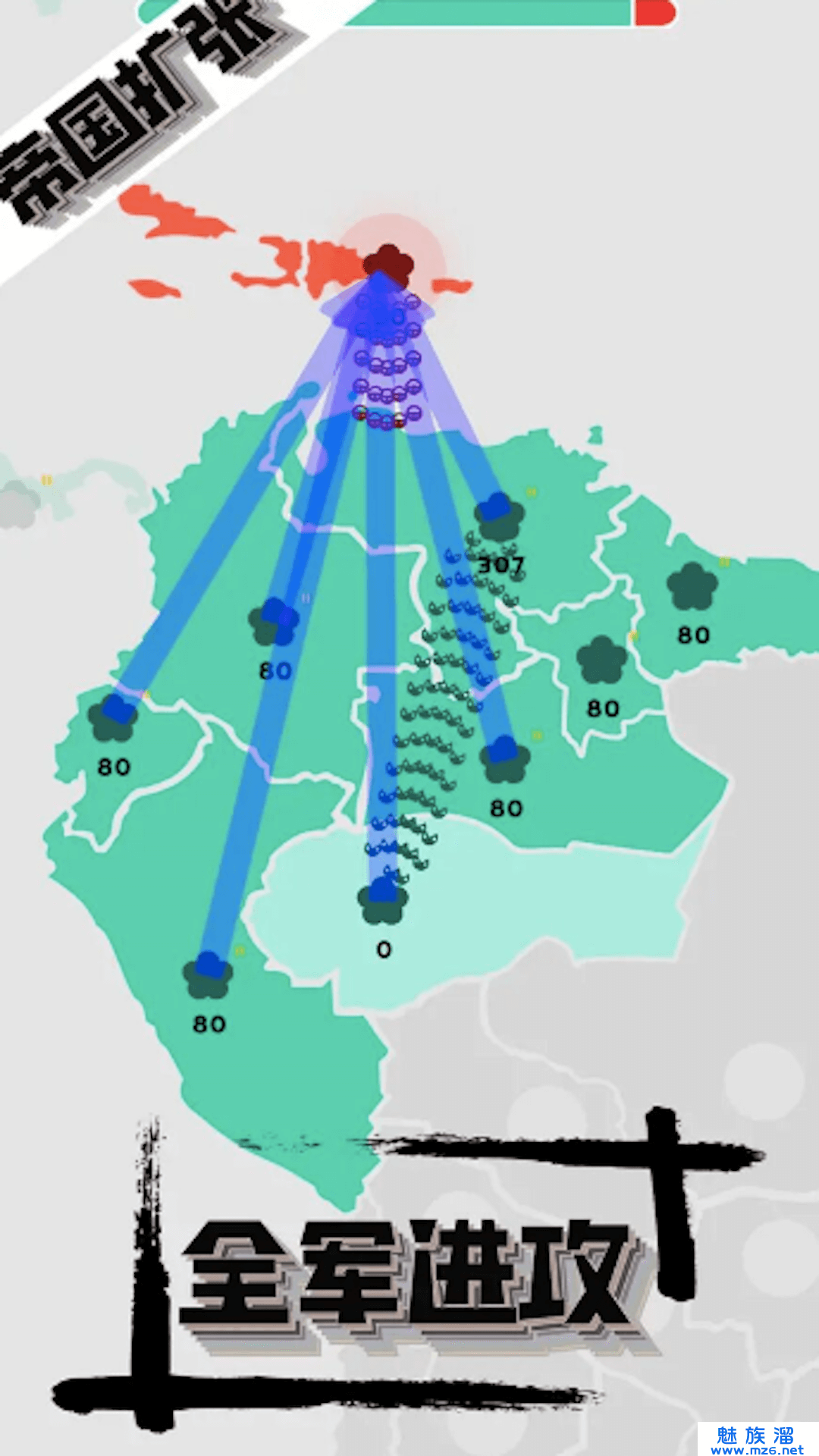 2、不断攻击其他国家,增加自己的领土,发展自己的帝国。