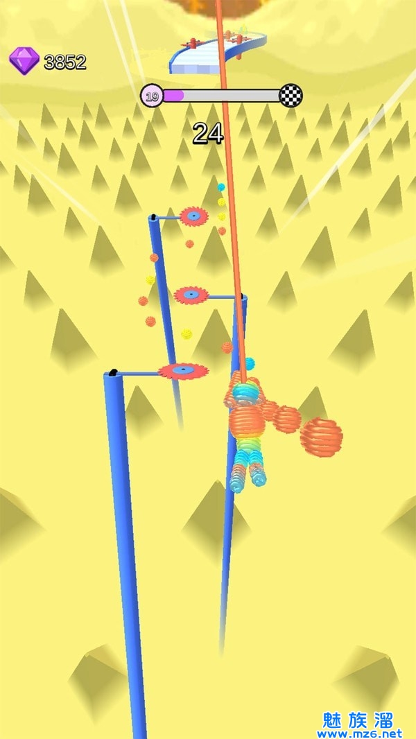 1、奔跑的过程中会有许多的障碍物阻碍着你的行动,准确无误避开它们才可以冲向胜利的步伐;