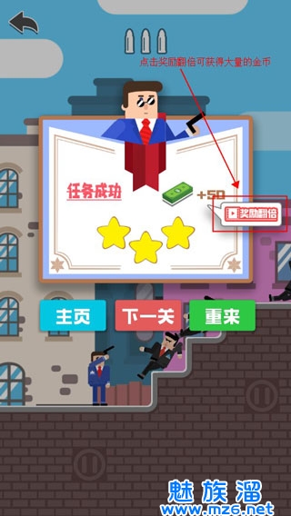 子弹先生的中文版采用了简单的卡通风格设计,延续了经典的游戏模式。