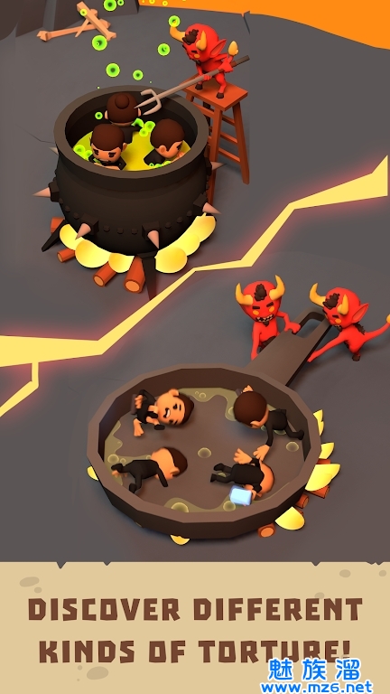和印象中的地狱不同,这里都是非常可爱的3D角色,玩家放置各种不同在地狱中可能有的设施来经营,