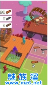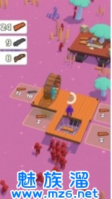 1、卡通世界,在森林环境中,收集材料资源,打造各种建筑物以及木筏。