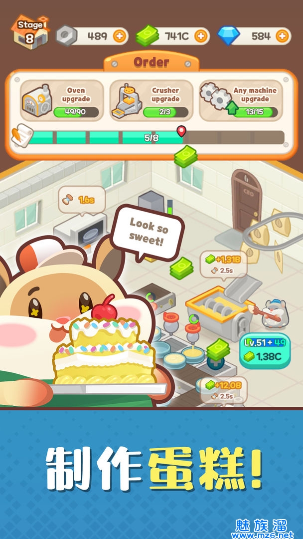 制作更多的蛋糕,增加工厂规模,并增添仓鼠的脸颊。