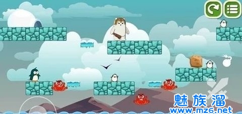 游戏是超级玛丽玩法,一路上还能遇到北极熊、海豹等各种可爱动物。