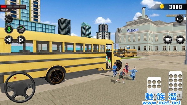 4、融入了现实风格的模拟校车驾驶,在城市中接送学生。