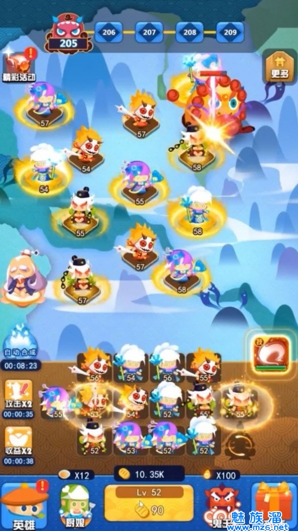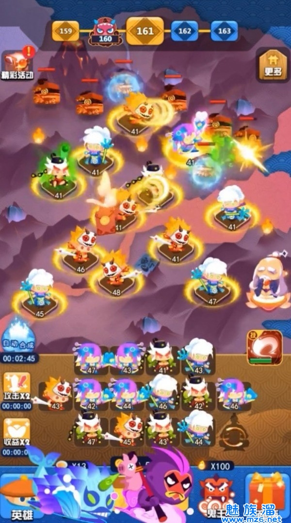 1、在这款游戏中,我们将会需要灵活放置不同的角色英雄来对妖怪进行抵抗,同时还会有红包好礼等待着你的领取。