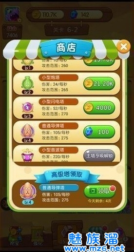 1、Q版卡通风的塔防闯关益智还可赚钱的小游戏;