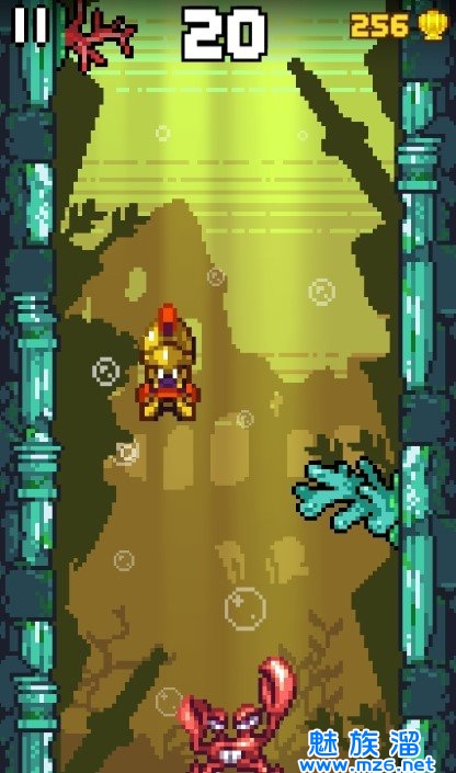 3、操纵着小乌贼躲避所有的危险向前冒险就可以了。千万不要碰触到周围的障碍物以及各种怪物!