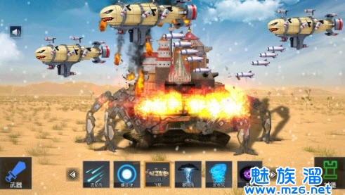 2、此外,你还可以派遣科技飞艇进行地面轰炸,并施展法术召唤流星雨。