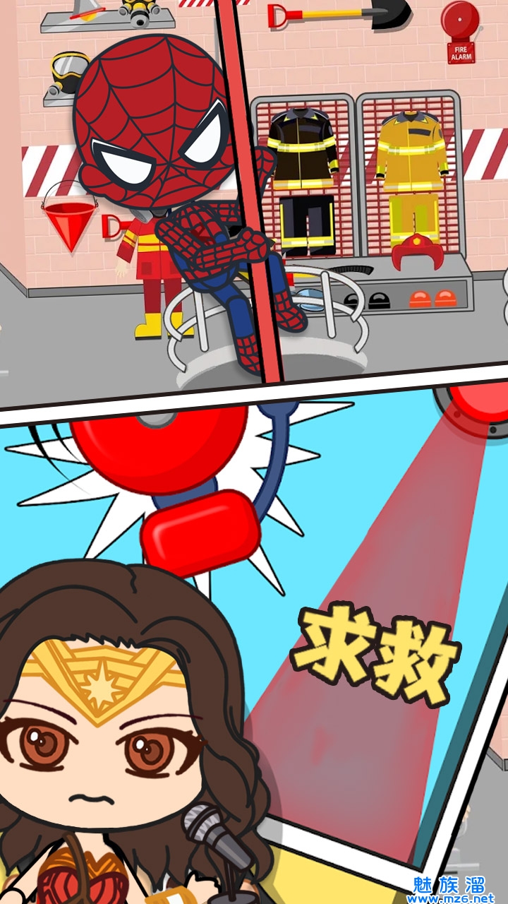 选择你喜爱的超级英雄,让他们成为一名消防员。