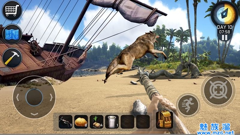 荒岛上有很多不同的船和新鲜的食物可以实时获取。