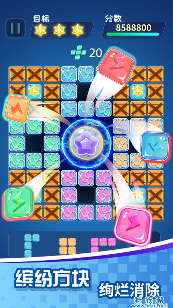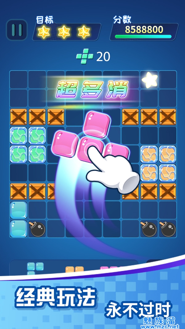 一款单机休闲益智游戏;我们以方块消除为核心玩法做出了一些演变