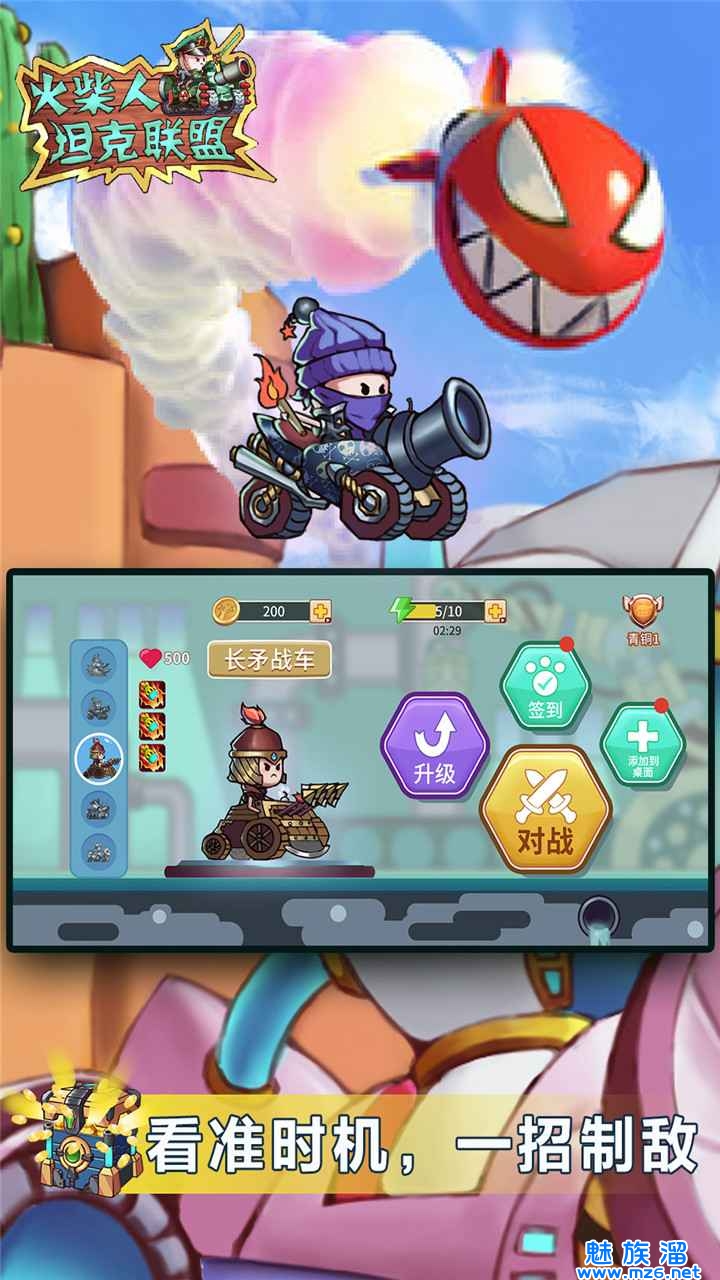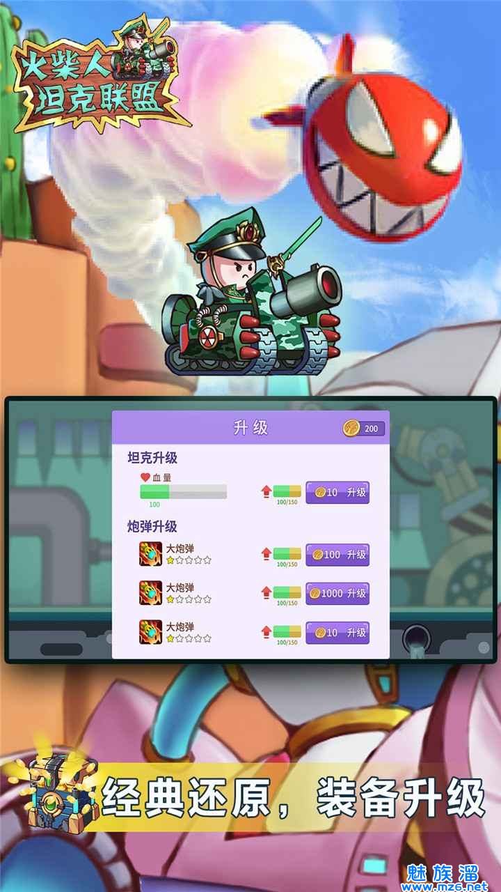 1、多种不同的火柴人可以自由的利用不同的武器开始自己的对决,各种不同的坦克冒险可以自由的提升。