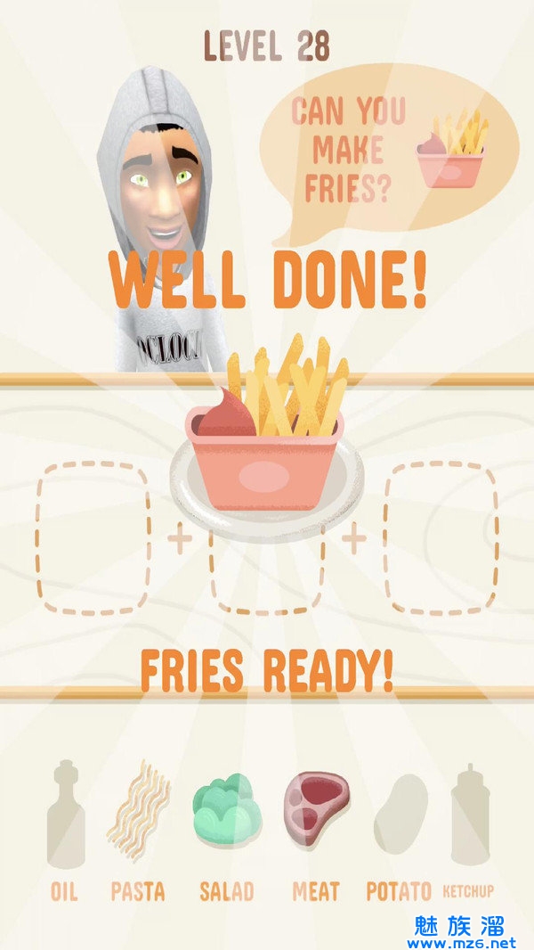 2、游戏也会给你自己不同的食材,按照正确的顺序组合这些美食。