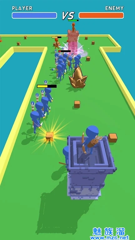 箭术冲破描述的是一款乐趣十足,轻松解压的休闲闯关游戏,玩家在游戏中需要通过控制一位挖矿工人去收集足够多的砖头和矿产,收集足够多以后去到雕像上进行注入,生成一个个弓箭兵或步兵这些战士去迎击敌人,最终摧毁对面雕像的游戏,玩法十分简单,快来下载试试吧!