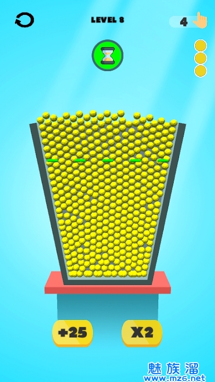 填满黄球杯描述的是一款趣味多多,轻松休闲的益智闯关小游戏,玩家在游戏中,在游戏规定的放小球次数内,将一个空杯子进行黄球填充,黄球填充到达规定的标准线后即可获得胜利进入下一关,游戏玩法也是十分简单,快来下载体验一下吧!