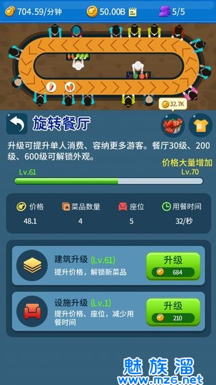 2、进来餐馆并且流量越多小岛的等级升级的越快。