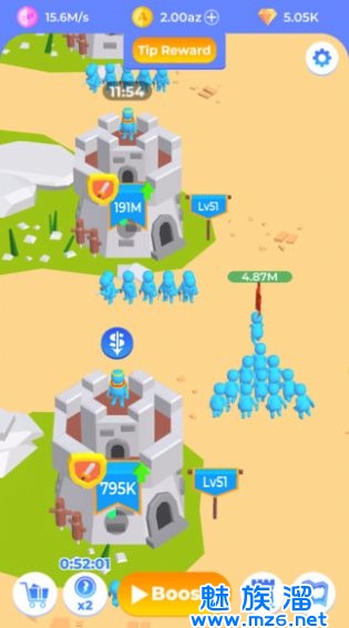 1.扩大城堡,训练你的士兵来让他们为你效力,无论是在建造或者战斗你都需要他们帮助你。