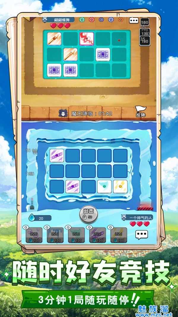 不同的卡牌打出会具有不同的特殊功效,有进攻或是防御魔法,让朋友灵活应对各种各样的对手。