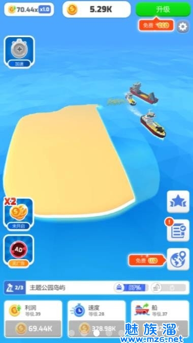 填海我贼溜描述的是一款趣味十足,休闲轻松的经营模拟类游戏,玩家在游戏中,根据游戏所提供的资源材料以及提示,控制轮船进行填海挑战,在海上排出沙子形成一块块小岛,然后填好了一大块岛屿之后在岛屿上面进行植被的种植和建筑物的建造,非常适合喜欢玩经营模拟的游戏爱好者,快来下载体验一下吧!