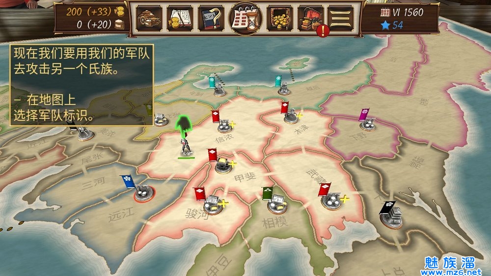 选择日本历史上的十五个氏族之一,体验战役,攻城掠地,解锁单位,巩固势力范围。