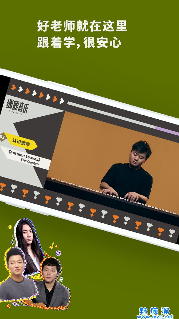 聘请来自于UCSD,伯克利音乐学院、中央音乐学院等学府的音乐天才,根据吉他尤克里里钢琴初学者属性,从简单到高阶,从技巧到乐理全部囊括。