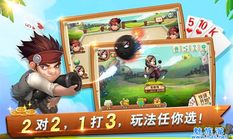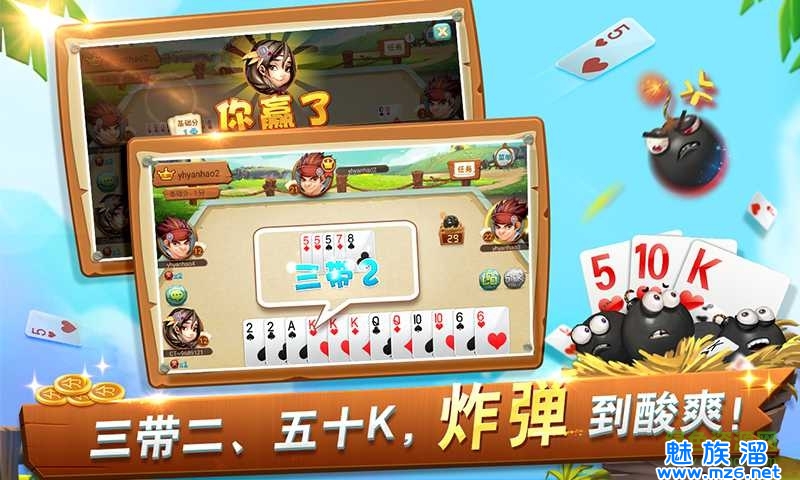 同城游广丰五十K根据广丰地道规则研发,为玩家提供原汁原味的地方扑克休闲游戏,采用2副牌,4人参加的方式,在普通五十K的基础上,加入了炸弹奖励,单王罚钱等当地特色玩法,使游戏更加刺激,竞争更强,需要玩家有更强大局观,是广丰人民在茶余饭后度过闲暇时光的最佳选择。