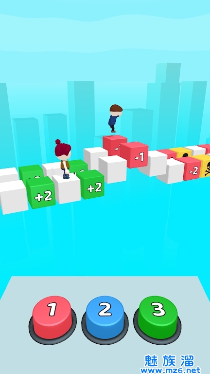 天空跳跃派对描述的是一款趣味十足,轻松解压的动作闯关冒险类游戏,在游戏中,玩家可以根据点击的次数来使得小人进行相应次数的移动,而且跳到一些特殊的格子会有意想不到的效果,可退后,可前进,还可以直接到终点或者游戏失败,游戏玩法十分简单,快来下载体验一下吧!